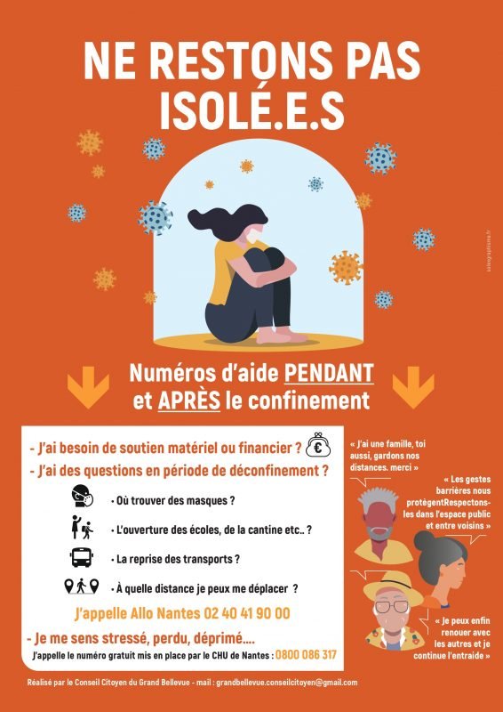 Envoi de courriers à la mairie de Nantes et Saint-Herblain : plusieurs courriers ont été envoyés aux mairies de ces deux villes. Cependant, les conseillers citoyens n’ont jamais eu de réponse. Pendant la période de confinement du printemps 2020 : réalisation d’une affiche : Afin de permettre aux habitants d’avoir accès à des numéros essentiels dans…